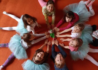 Balet rozbudza wrażliwość na piękno, elegancję oraz estetykę ruchu. Na zajęciach dzieci poznają zasady tańca klasycznego, uczą się podstawowych pozycji nóg i rąk oraz profesjonalnego słownictwa. Szybko nabywają płynności ruchów, wdzięku i pewności siebie.