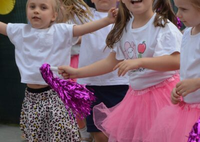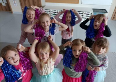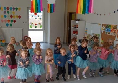 - taneczno-muzyczne gry i zabawy ruchowe poprawiające koordynację ruchową i koncentrację